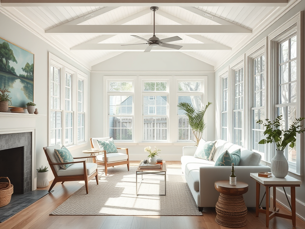 Marion’s waterfront and village neighborhoods pair beautifully with soft whites, sea-glass greens, foggy grays, calm blues, and driftwood neutrals. These colors reflect the surrounding landscape and keep interiors feeling breezy and calm.